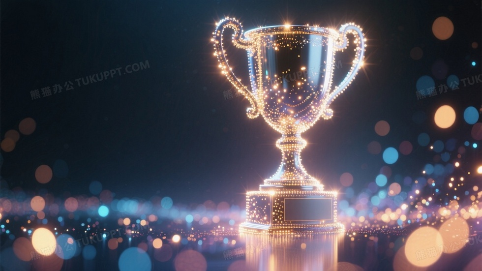 本作品内容为粒子光效组成的巨大奖杯出现在画面一侧, 格式为 jpg, 大小1 MB, 图片尺寸为1664 x 936, 作品中背景图片无需修改, 源文件无水印,可以直接使用, 欢迎使用熊猫办公。 如认为平台内容涉嫌侵权,可通过邮件:tousu@tukuppt.com提出书面通知,我们将及时处理。