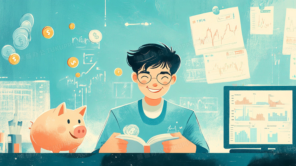 本作品内容为男子看数据报表分析存钱卡通插画, 格式为 jpg, 大小4 MB, 图片尺寸为2912 x 1632, 源文件无水印, 欢迎使用熊猫办公。 如认为平台内容涉嫌侵权,可通过邮件:tousu@tukuppt.com提出书面通知,我们将及时处理。