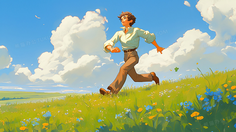 本作品内容为草地上奔跑的少年插画, 格式为 jpg, 大小3 MB, 图片尺寸为2912 x 1632, 源文件无水印, 欢迎使用熊猫办公。 如认为平台内容涉嫌侵权,可通过邮件:tousu@tukuppt.com提出书面通知,我们将及时处理。