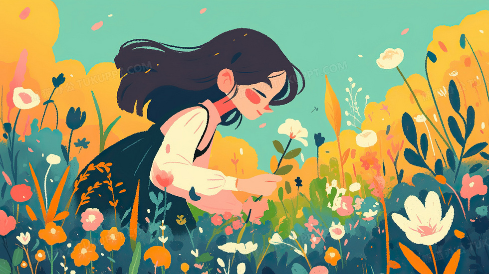 本作品内容为一个摘花的少女插画, 格式为 jpg, 大小3 MB, 图片尺寸为2912 x 1632, 源文件无水印, 欢迎使用熊猫办公。 如认为平台内容涉嫌侵权,可通过邮件:tousu@tukuppt.com提出书面通知,我们将及时处理。