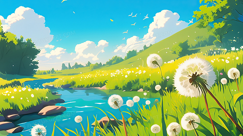 本作品内容为溪边的蒲公英插画, 格式为 jpg, 大小3 MB, 图片尺寸为2912 x 1632, 源文件无水印, 欢迎使用熊猫办公。 如认为平台内容涉嫌侵权,可通过邮件:tousu@tukuppt.com提出书面通知,我们将及时处理。