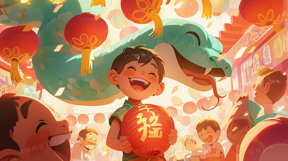 本作品内容为蛇年新年元旦集市售卖灯笼男孩与卡通蛇插画, 格式为 jpg, 大小3 MB, 图片尺寸为2912 x 1632, 源文件无水印, 欢迎使用熊猫办公。 如认为平台内容涉嫌侵权,可通过邮件:tousu@tukuppt.com提出书面通知,我们将及时处理。