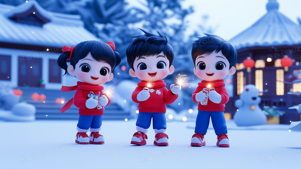 本作品内容为三个孩子庆祝中国新年三维海报插画, 格式为 jpg, 大小7 MB, 图片尺寸为2912 x 1632, 源文件无水印, 欢迎使用熊猫办公。 如认为平台内容涉嫌侵权,可通过邮件:tousu@tukuppt.com提出书面通知,我们将及时处理。