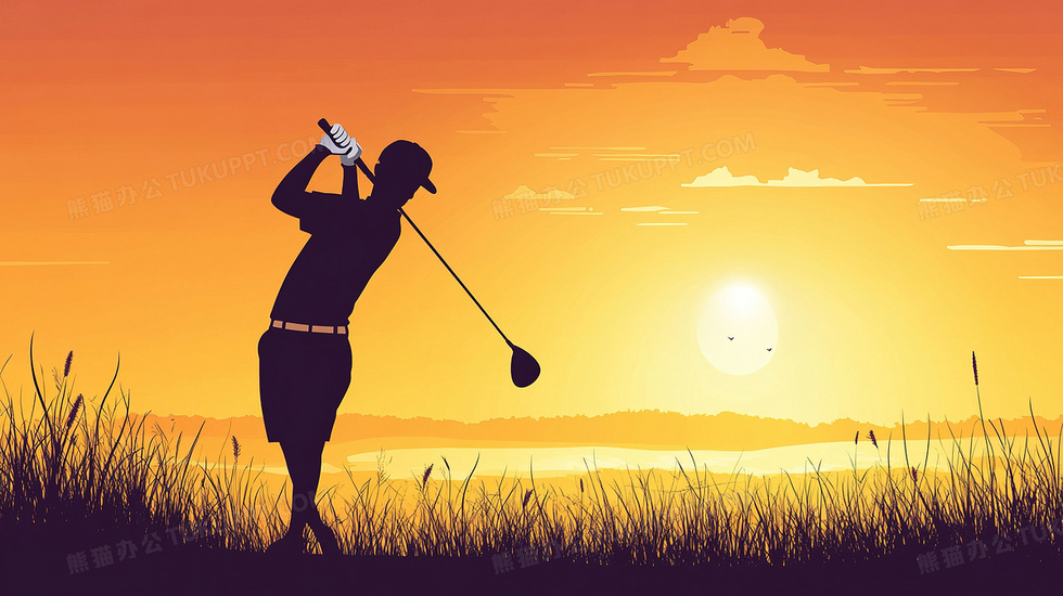 本作品内容为夕阳下打高尔夫球剪影插画, 格式为 jpg, 大小3 MB, 图片尺寸为2912 x 1632, 源文件无水印, 欢迎使用熊猫办公。 如认为平台内容涉嫌侵权,可通过邮件:tousu@tukuppt.com提出书面通知,我们将及时处理。