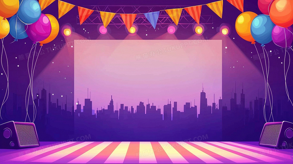 本作品内容为卡通舞台装饰气球灯光背景, 格式为 jpg, 大小2 MB, 图片尺寸为2912 x 1632, 作品中背景图片无需修改, 源文件无水印,可以直接使用, 欢迎使用熊猫办公。 如认为平台内容涉嫌侵权,可通过邮件:tousu@tukuppt.com提出书面通知,我们将及时处理。