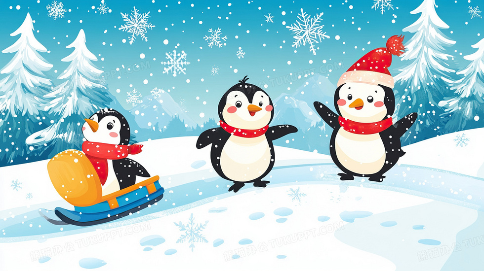 本作品内容为卡通风冬天的企鹅插画, 格式为 jpg, 大小3 MB, 图片尺寸为2912 x 1632, 源文件无水印, 欢迎使用熊猫办公。 如认为平台内容涉嫌侵权,可通过邮件:tousu@tukuppt.com提出书面通知,我们将及时处理。