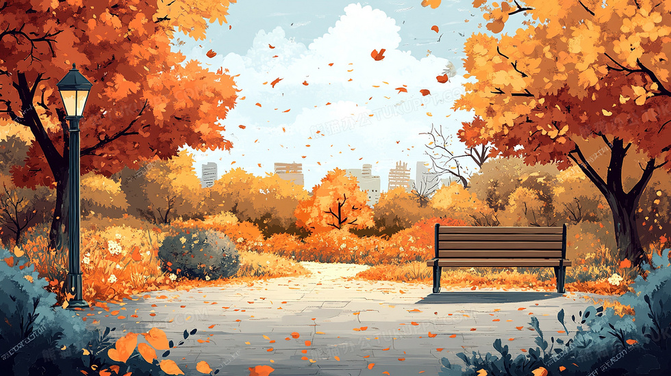 本作品内容为秋天户外美丽的公园场景插画, 格式为 jpg, 大小4 MB, 图片尺寸为2912 x 1632, 源文件无水印, 欢迎使用熊猫办公。 如认为平台内容涉嫌侵权,可通过邮件:tousu@tukuppt.com提出书面通知,我们将及时处理。