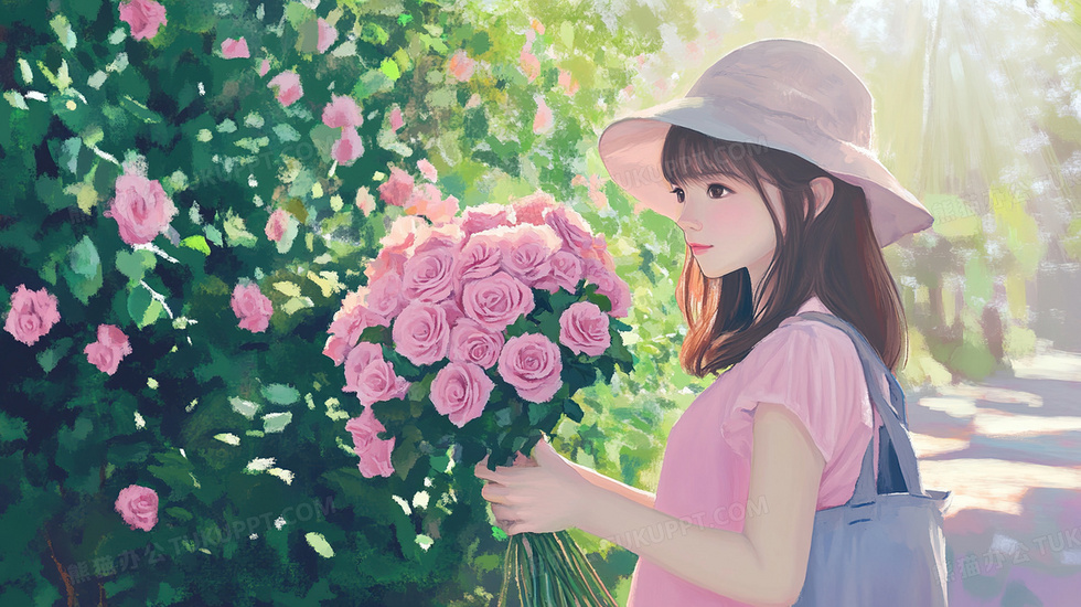 本作品内容为水彩手绘玫瑰花花丛前捧着玫瑰花的女孩插画, 格式为 jpg, 大小3 MB, 图片尺寸为2912 x 1632, 源文件无水印, 欢迎使用熊猫办公。 如认为平台内容涉嫌侵权,可通过邮件:tousu@tukuppt.com提出书面通知,我们将及时处理。