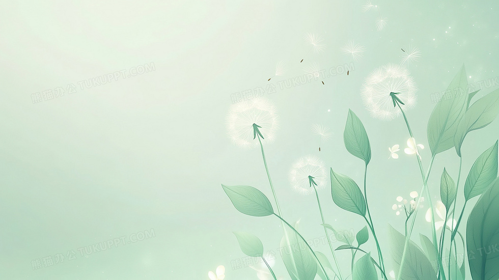 本作品内容为简约清新风蒲公英和草背景, 格式为 jpg, 大小2 MB, 图片尺寸为2912 x 1632, 作品中背景图片无需修改, 源文件无水印,可以直接使用, 欢迎使用熊猫办公。 如认为平台内容涉嫌侵权,可通过邮件:tousu@tukuppt.com提出书面通知,我们将及时处理。