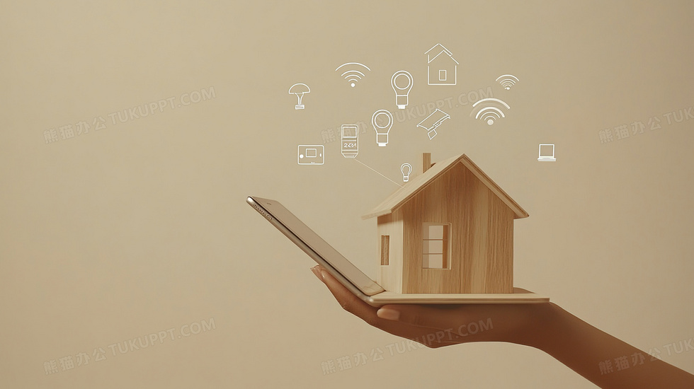 本作品内容为掌上智能家居背景, 格式为 jpg, 大小2 MB, 图片尺寸为2912 x 1632, 作品中背景图片无需修改, 源文件无水印,可以直接使用, 欢迎使用熊猫办公。 如认为平台内容涉嫌侵权,可通过邮件:tousu@tukuppt.com提出书面通知,我们将及时处理。