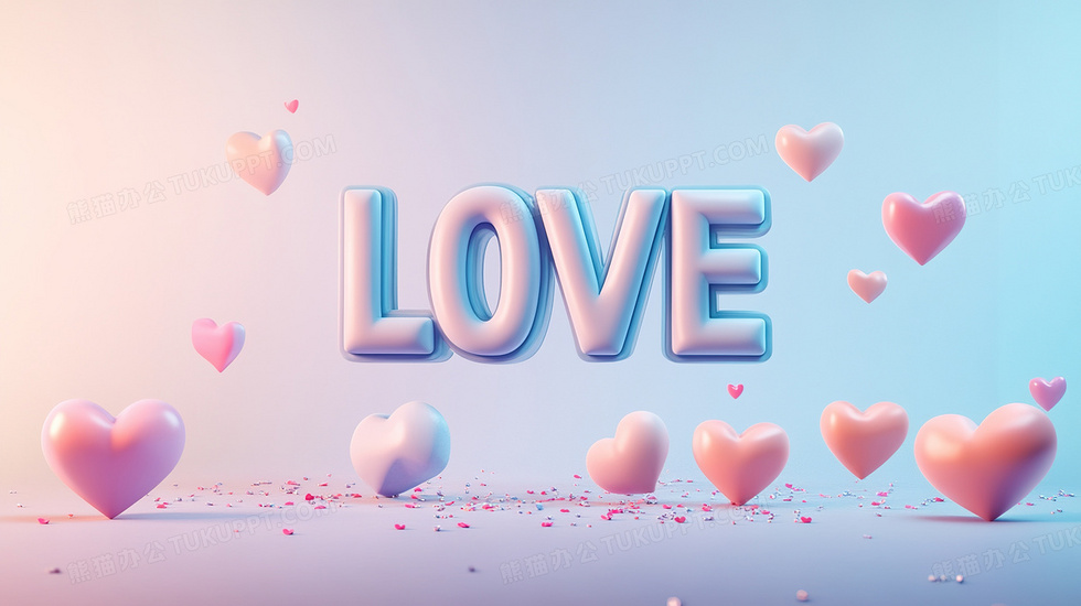 本作品内容为紫蓝简约风立体LOVE背景, 格式为 jpg, 大小2 MB, 图片尺寸为2912 x 1632, 作品中背景图片无需修改, 源文件无水印,可以直接使用, 欢迎使用熊猫办公。 如认为平台内容涉嫌侵权,可通过邮件:tousu@tukuppt.com提出书面通知,我们将及时处理。
