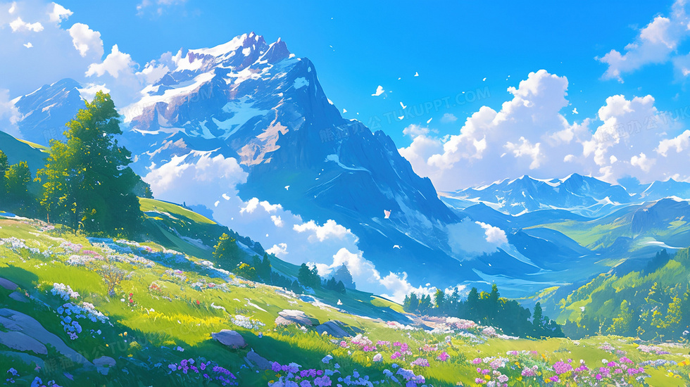 本作品内容为蓝天白云唯美春天草地风光插画, 格式为 jpg, 大小3 MB, 图片尺寸为2912 x 1632, 源文件无水印, 欢迎使用熊猫办公。 如认为平台内容涉嫌侵权,可通过邮件:tousu@tukuppt.com提出书面通知,我们将及时处理。