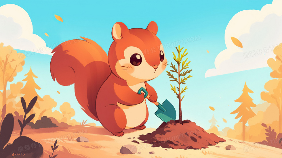 本作品内容为松鼠山地植树插画, 格式为 jpg, 大小2 MB, 图片尺寸为2912 x 1632, 源文件无水印, 欢迎使用熊猫办公。 如认为平台内容涉嫌侵权,可通过邮件:tousu@tukuppt.com提出书面通知,我们将及时处理。