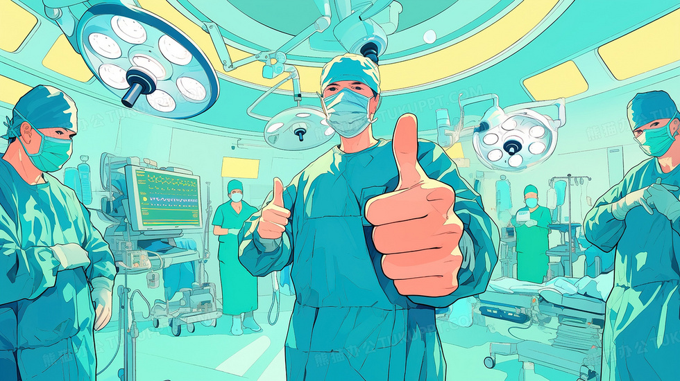 本作品内容为医生在手术室里做点赞手势插画, 格式为 jpg, 大小4 MB, 图片尺寸为2912 x 1632, 源文件无水印, 欢迎使用熊猫办公。 如认为平台内容涉嫌侵权,可通过邮件:tousu@tukuppt.com提出书面通知,我们将及时处理。