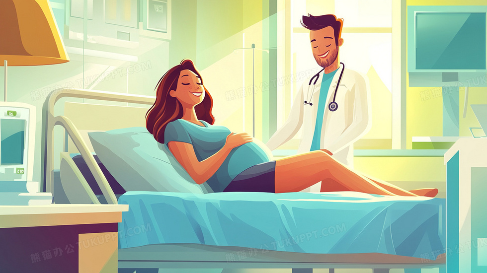 本作品内容为医务室医生给孕妇做检查的卡通插画, 格式为 jpg, 大小2 MB, 图片尺寸为2912 x 1632, 源文件无水印, 欢迎使用熊猫办公。 如认为平台内容涉嫌侵权,可通过邮件:tousu@tukuppt.com提出书面通知,我们将及时处理。