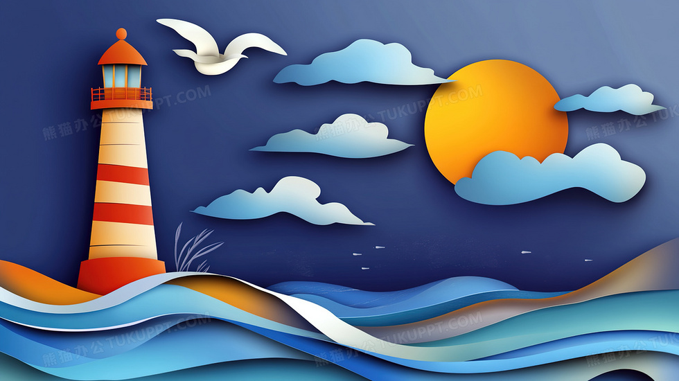 本作品内容为剪纸风海面上的高塔插画, 格式为 jpg, 大小4 MB, 图片尺寸为2912 x 1632, 源文件无水印, 欢迎使用熊猫办公。 如认为平台内容涉嫌侵权,可通过邮件:tousu@tukuppt.com提出书面通知,我们将及时处理。