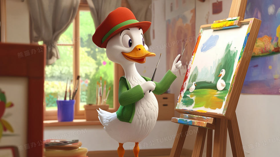 本作品内容为画室内认真作画的可爱卡通动物鸭子画家插画, 格式为 jpg, 大小3 MB, 图片尺寸为2912 x 1632, 源文件无水印, 欢迎使用熊猫办公。 如认为平台内容涉嫌侵权,可通过邮件:tousu@tukuppt.com提出书面通知,我们将及时处理。
