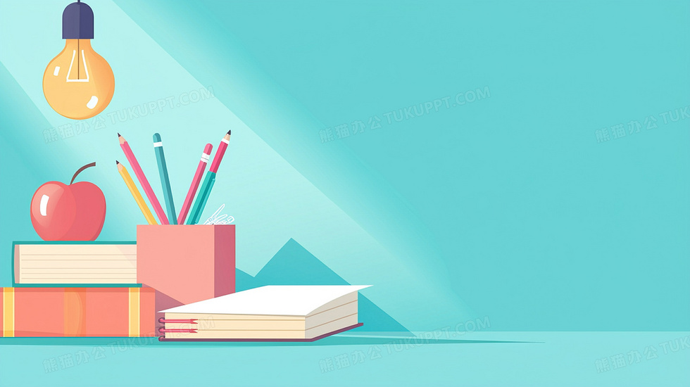 本作品内容为桌面上的学习文具卡通背景, 格式为 jpg, 大小2 MB, 图片尺寸为2912 x 1632, 作品中背景图片无需修改, 源文件无水印,可以直接使用, 欢迎使用熊猫办公。 如认为平台内容涉嫌侵权,可通过邮件:tousu@tukuppt.com提出书面通知,我们将及时处理。