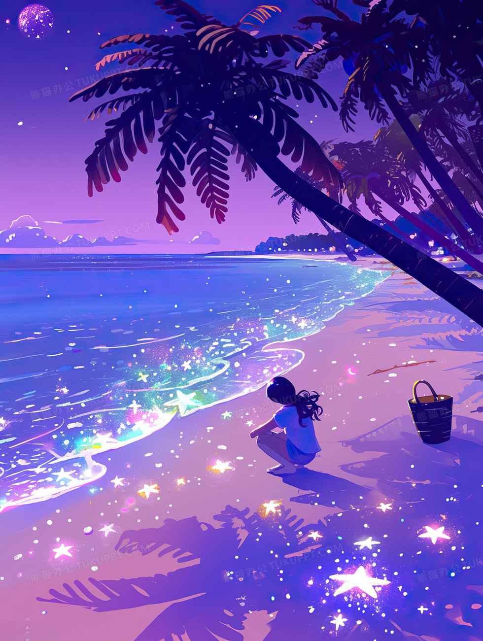 本作品内容为荧光海星滩唯美风景插画, 格式为 jpg, 大小3 MB, 图片尺寸为1856 x 2464, 源文件无水印, 欢迎使用熊猫办公。 如认为平台内容涉嫌侵权,可通过邮件:tousu@tukuppt.com提出书面通知,我们将及时处理。