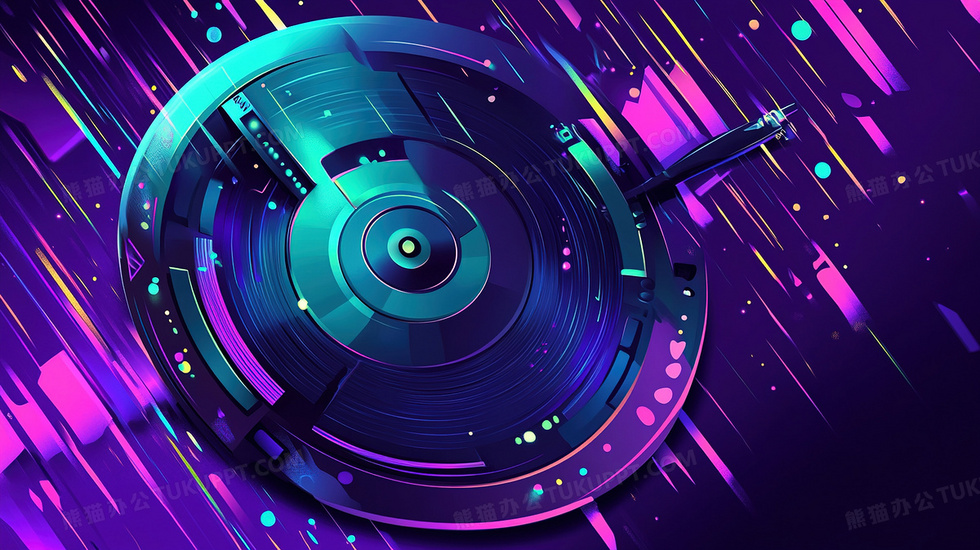 本作品内容为音乐音频载体创意碟片海报插画, 格式为 jpg, 大小3 MB, 图片尺寸为2912 x 1632, 源文件无水印, 欢迎使用熊猫办公。 如认为平台内容涉嫌侵权,可通过邮件:tousu@tukuppt.com提出书面通知,我们将及时处理。