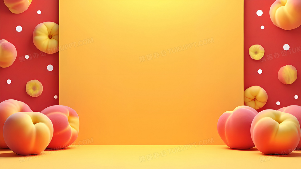 本作品内容为极简风创意水果食品桃子背景, 格式为 jpg, 大小2 MB, 图片尺寸为3072 x 1728, 作品中背景图片无需修改, 源文件无水印,可以直接使用, 欢迎使用熊猫办公。 如认为平台内容涉嫌侵权,可通过邮件:tousu@tukuppt.com提出书面通知,我们将及时处理。