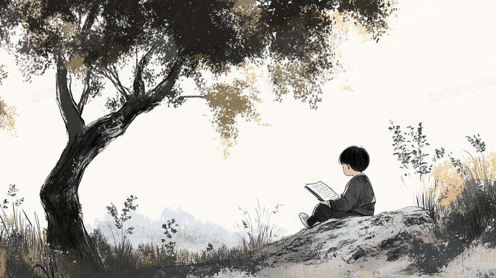 本作品内容为可爱风格水墨画一个孩子在树下看书插画, 格式为 jpg, 大小4 MB, 图片尺寸为2912 x 1632, 源文件无水印, 欢迎使用熊猫办公。 如认为平台内容涉嫌侵权,可通过邮件:tousu@tukuppt.com提出书面通知,我们将及时处理。