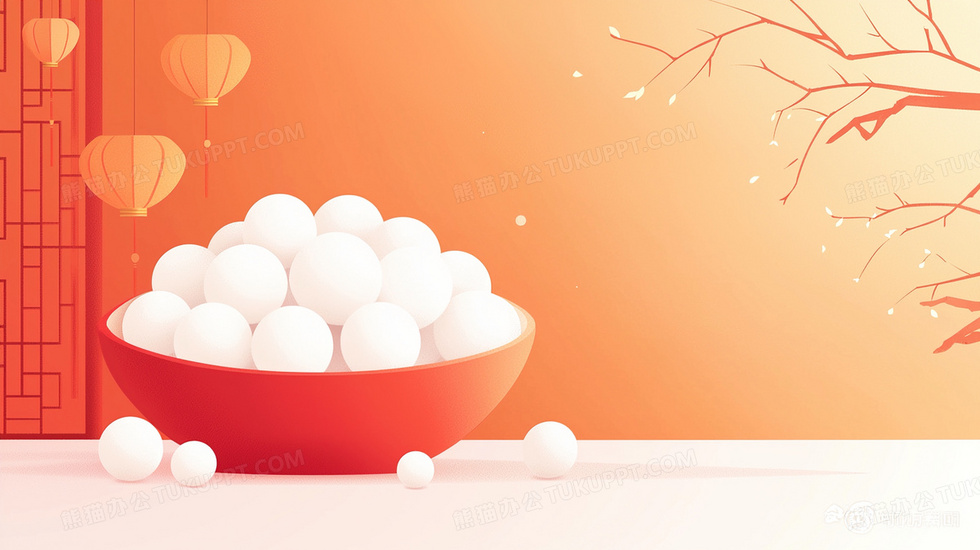 本作品内容为喜庆红色元宵美食汤圆灯笼背景, 格式为 jpg, 大小2 MB, 图片尺寸为2912 x 1632, 作品中背景图片无需修改, 源文件无水印,可以直接使用, 欢迎使用熊猫办公。 如认为平台内容涉嫌侵权,可通过邮件:tousu@tukuppt.com提出书面通知,我们将及时处理。