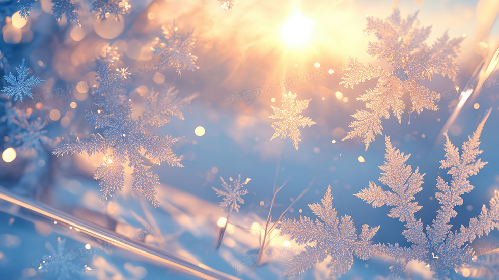 本作品内容为寒冷冬季雪花冰晶阳光照射插画, 格式为 jpg, 大小3 MB, 图片尺寸为2912 x 1632, 源文件无水印, 欢迎使用熊猫办公。 如认为平台内容涉嫌侵权,可通过邮件:tousu@tukuppt.com提出书面通知,我们将及时处理。