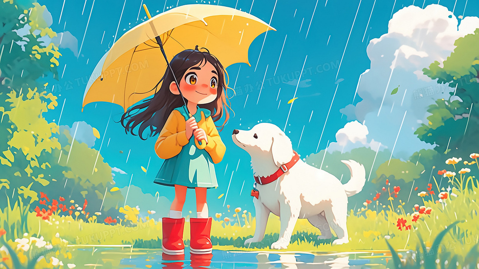 本作品内容为卡通女孩撑伞狗春雨下雨天雨水插画, 格式为 jpg, 大小3 MB, 图片尺寸为2912 x 1632, 源文件无水印, 欢迎使用熊猫办公。 如认为平台内容涉嫌侵权,可通过邮件:tousu@tukuppt.com提出书面通知,我们将及时处理。