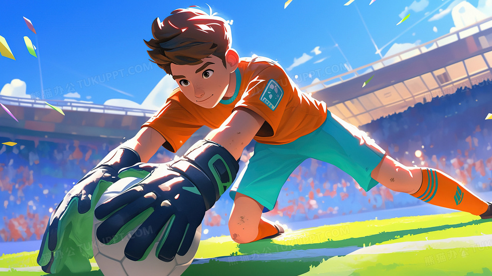 本作品内容为足球守门员卡通插画, 格式为 jpg, 大小3 MB, 图片尺寸为2912 x 1632, 源文件无水印, 欢迎使用熊猫办公。 如认为平台内容涉嫌侵权,可通过邮件:tousu@tukuppt.com提出书面通知,我们将及时处理。
