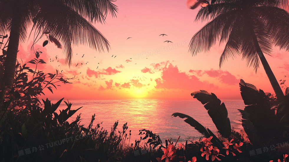 本作品内容为椰树海边夕阳落日晚霞背景, 格式为 jpg, 大小4 MB, 图片尺寸为2912 x 1632, 作品中背景图片无需修改, 源文件无水印,可以直接使用, 欢迎使用熊猫办公。 如认为平台内容涉嫌侵权,可通过邮件:tousu@tukuppt.com提出书面通知,我们将及时处理。