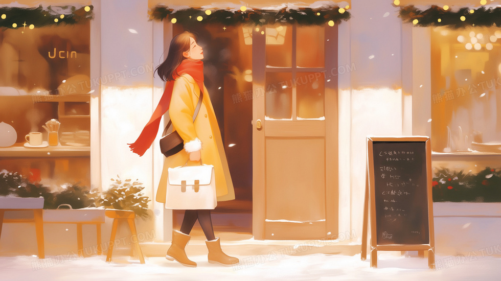 本作品内容为女孩手拿热乎乎的咖啡走出咖啡屋插画, 格式为 jpg, 大小6 MB, 图片尺寸为2912 x 1632, 源文件无水印, 欢迎使用熊猫办公。 如认为平台内容涉嫌侵权,可通过邮件:tousu@tukuppt.com提出书面通知,我们将及时处理。