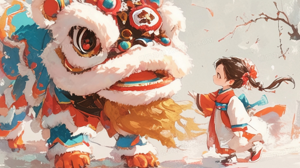 本作品内容为喜庆新年看舞狮子表演的古代小女孩插画, 格式为 jpg, 大小3 MB, 图片尺寸为2912 x 1632, 源文件无水印, 欢迎使用熊猫办公。 如认为平台内容涉嫌侵权,可通过邮件:tousu@tukuppt.com提出书面通知,我们将及时处理。
