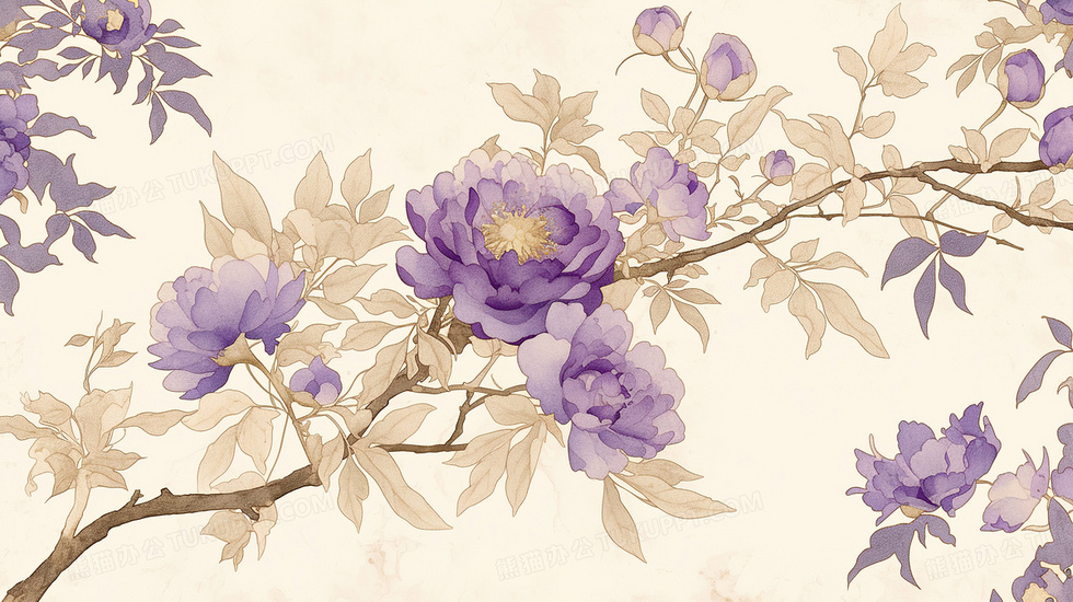 本作品内容为树枝上的紫色植物海棠花插画, 格式为 jpg, 大小4 MB, 图片尺寸为2912 x 1632, 源文件无水印, 欢迎使用熊猫办公。 如认为平台内容涉嫌侵权,可通过邮件:tousu@tukuppt.com提出书面通知,我们将及时处理。