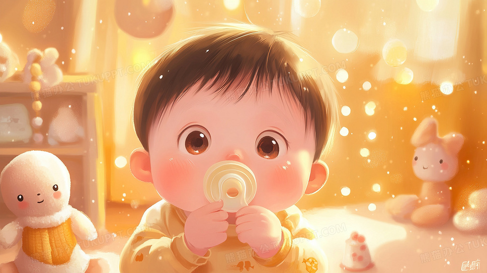 本作品内容为卡通风吃奶嘴的婴儿插画, 格式为 jpg, 大小3 MB, 图片尺寸为2912 x 1632, 源文件无水印, 欢迎使用熊猫办公。 如认为平台内容涉嫌侵权,可通过邮件:tousu@tukuppt.com提出书面通知,我们将及时处理。