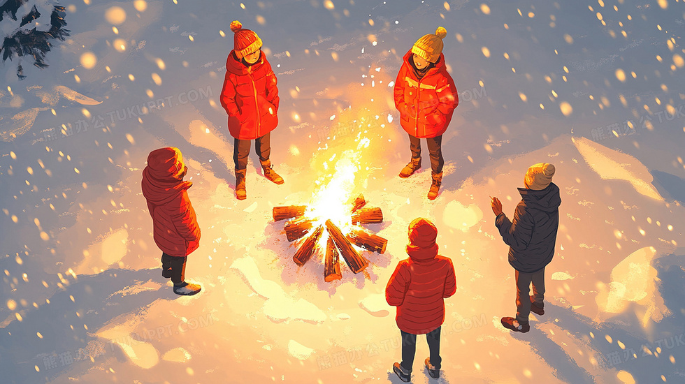 本作品内容为冬天雪露营地烤火取暖插画, 格式为 jpg, 大小3 MB, 图片尺寸为2912 x 1632, 源文件无水印, 欢迎使用熊猫办公。 如认为平台内容涉嫌侵权,可通过邮件:tousu@tukuppt.com提出书面通知,我们将及时处理。