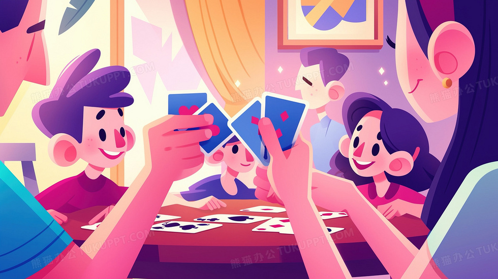 本作品内容为娱乐生活打扑克牌欢乐一家人卡通插画, 格式为 jpg, 大小2 MB, 图片尺寸为2912 x 1632, 源文件无水印, 欢迎使用熊猫办公。 如认为平台内容涉嫌侵权,可通过邮件:tousu@tukuppt.com提出书面通知,我们将及时处理。