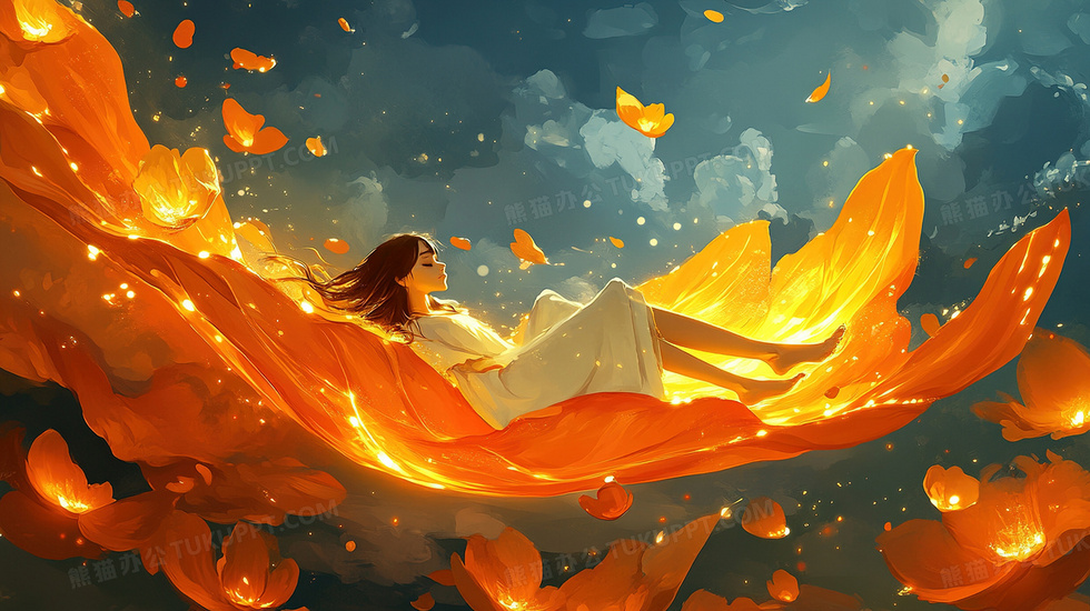 本作品内容为少女躺在一片叶子上梦幻治愈唯美场景插画, 格式为 jpg, 大小3 MB, 图片尺寸为2912 x 1632, 源文件无水印, 欢迎使用熊猫办公。 如认为平台内容涉嫌侵权,可通过邮件:tousu@tukuppt.com提出书面通知,我们将及时处理。