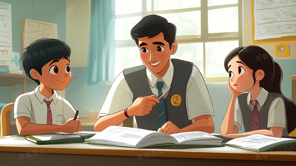 本作品内容为卡通风老师给学生辅导作业插画, 格式为 jpg, 大小3 MB, 图片尺寸为2912 x 1632, 源文件无水印, 欢迎使用熊猫办公。 如认为平台内容涉嫌侵权,可通过邮件:tousu@tukuppt.com提出书面通知,我们将及时处理。