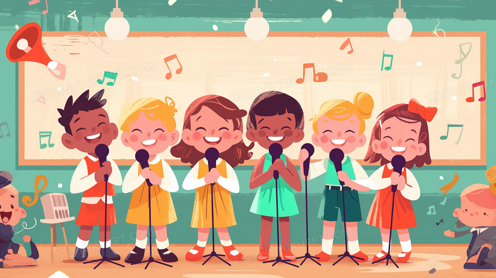 本作品内容为小朋友合唱团舞台表演唱歌插画, 格式为 jpg, 大小2 MB, 图片尺寸为2912 x 1632, 源文件无水印, 欢迎使用熊猫办公。 如认为平台内容涉嫌侵权,可通过邮件:tousu@tukuppt.com提出书面通知,我们将及时处理。