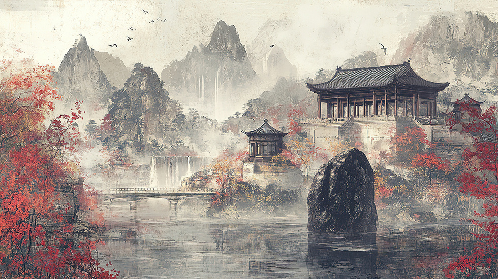 首页 > 插画 > 科技艺术 > 中国风 > 水墨写意山水画假山奇石唯美插画