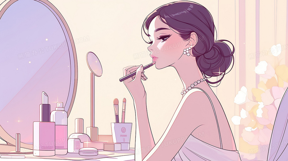 本作品内容为卡通淡雅女孩化妆人物插画, 格式为 jpg, 大小2 MB, 图片尺寸为2912 x 1632, 源文件无水印, 欢迎使用熊猫办公。 如认为平台内容涉嫌侵权,可通过邮件:tousu@tukuppt.com提出书面通知,我们将及时处理。