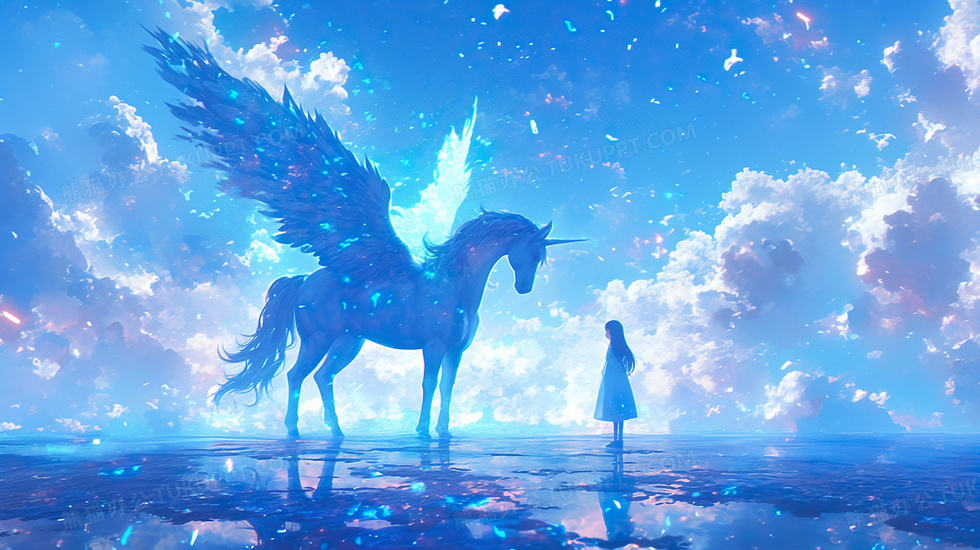 本作品内容为飞马女孩梦幻天空唯美风景插画, 格式为 jpg, 大小4 MB, 图片尺寸为2912 x 1632, 源文件无水印, 欢迎使用熊猫办公。 如认为平台内容涉嫌侵权,可通过邮件:tousu@tukuppt.com提出书面通知,我们将及时处理。
