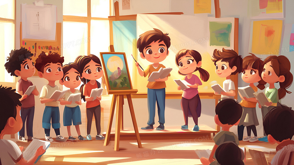 本作品内容为绘画课堂场景插画, 格式为 jpg, 大小1 MB, 图片尺寸为2912 x 1632, 源文件无水印, 欢迎使用熊猫办公。 如认为平台内容涉嫌侵权,可通过邮件:tousu@tukuppt.com提出书面通知,我们将及时处理。