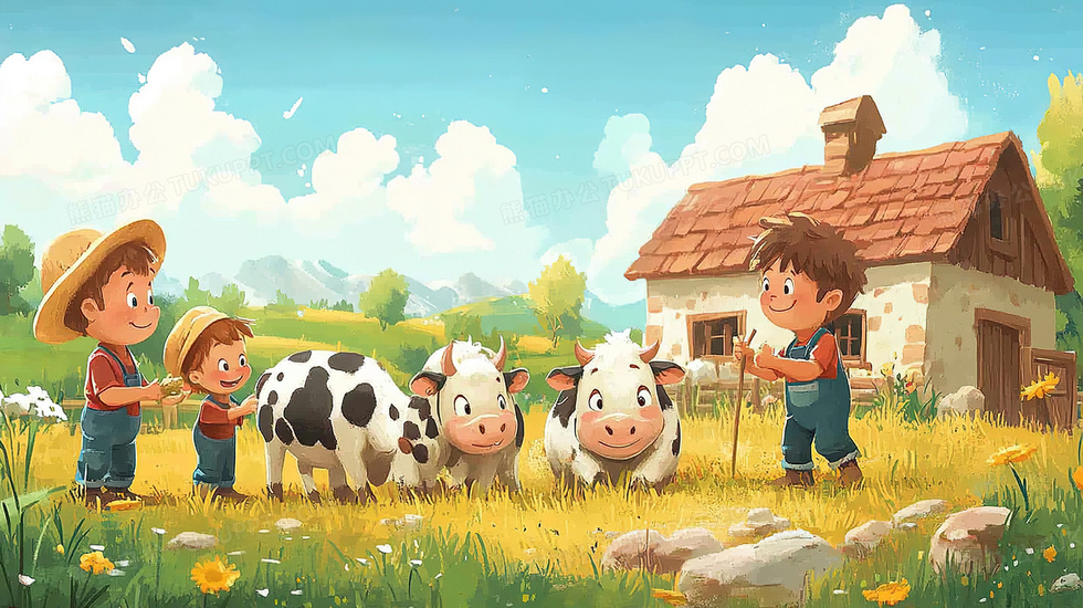 本作品内容为农场牧场农业养殖喂养牛群插画, 格式为 jpg, 大小3 MB, 图片尺寸为2912 x 1632, 源文件无水印, 欢迎使用熊猫办公。 如认为平台内容涉嫌侵权,可通过邮件:tousu@tukuppt.com提出书面通知,我们将及时处理。