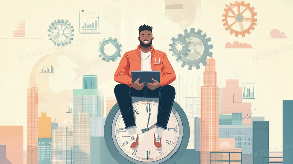 本作品内容为时间管理坐在时钟上的人物创意插画, 格式为 jpg, 大小3 MB, 图片尺寸为2912 x 1632, 源文件无水印, 欢迎使用熊猫办公。 如认为平台内容涉嫌侵权,可通过邮件:tousu@tukuppt.com提出书面通知,我们将及时处理。