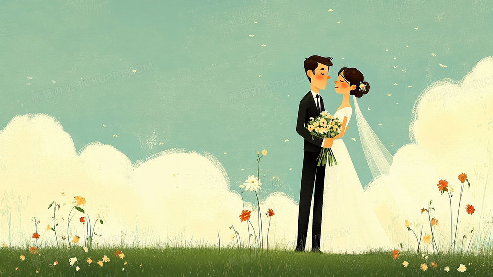 本作品内容为梦幻新郎新娘婚礼结婚插画, 格式为 jpg, 大小3 MB, 图片尺寸为2912 x 1632, 源文件无水印, 欢迎使用熊猫办公。 如认为平台内容涉嫌侵权,可通过邮件:tousu@tukuppt.com提出书面通知,我们将及时处理。