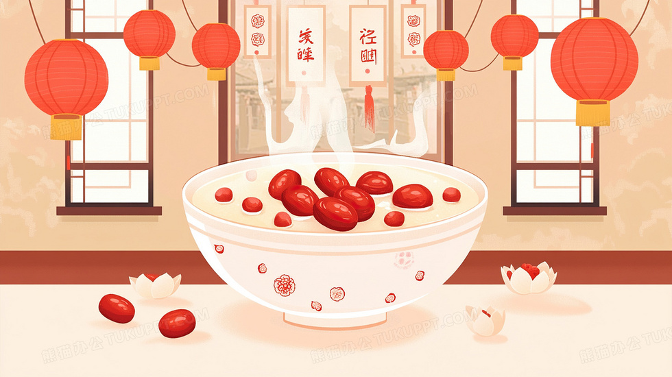 本作品内容为腊八节红枣腊八粥节日饮食插画, 格式为 jpg, 大小2 MB, 图片尺寸为2912 x 1632, 源文件无水印, 欢迎使用熊猫办公。 如认为平台内容涉嫌侵权,可通过邮件:tousu@tukuppt.com提出书面通知,我们将及时处理。