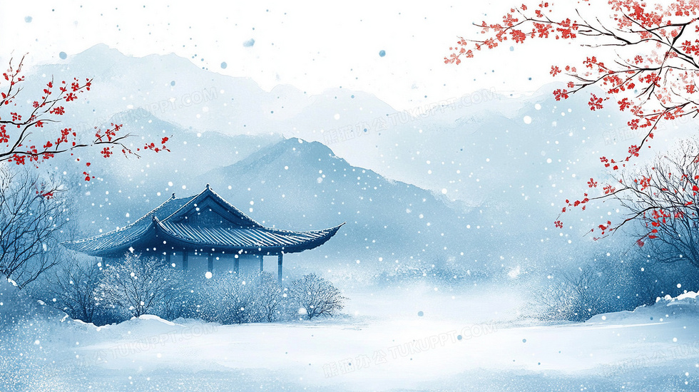 本作品内容为中国风冬天立冬雪景背景, 格式为 jpg, 大小4 MB, 图片尺寸为2912 x 1632, 作品中背景图片无需修改, 源文件无水印,可以直接使用, 欢迎使用熊猫办公。 如认为平台内容涉嫌侵权,可通过邮件:tousu@tukuppt.com提出书面通知,我们将及时处理。