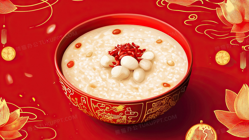本作品内容为红色传统习俗腊八粥美食插画, 格式为 jpg, 大小3 MB, 图片尺寸为2912 x 1632, 源文件无水印, 欢迎使用熊猫办公。 如认为平台内容涉嫌侵权,可通过邮件:tousu@tukuppt.com提出书面通知,我们将及时处理。